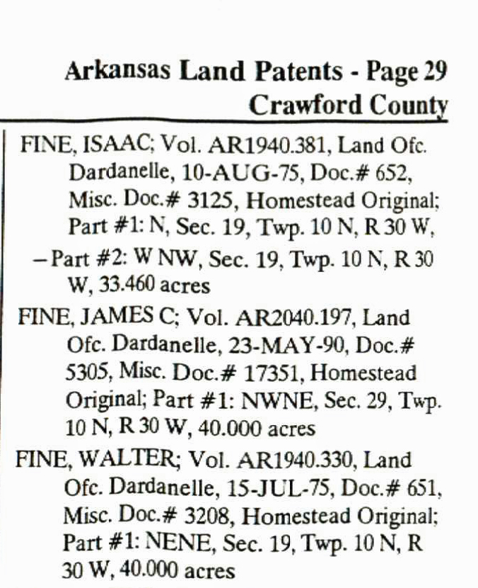 settle near Fine's Springs in Crawford Co Arkansas.